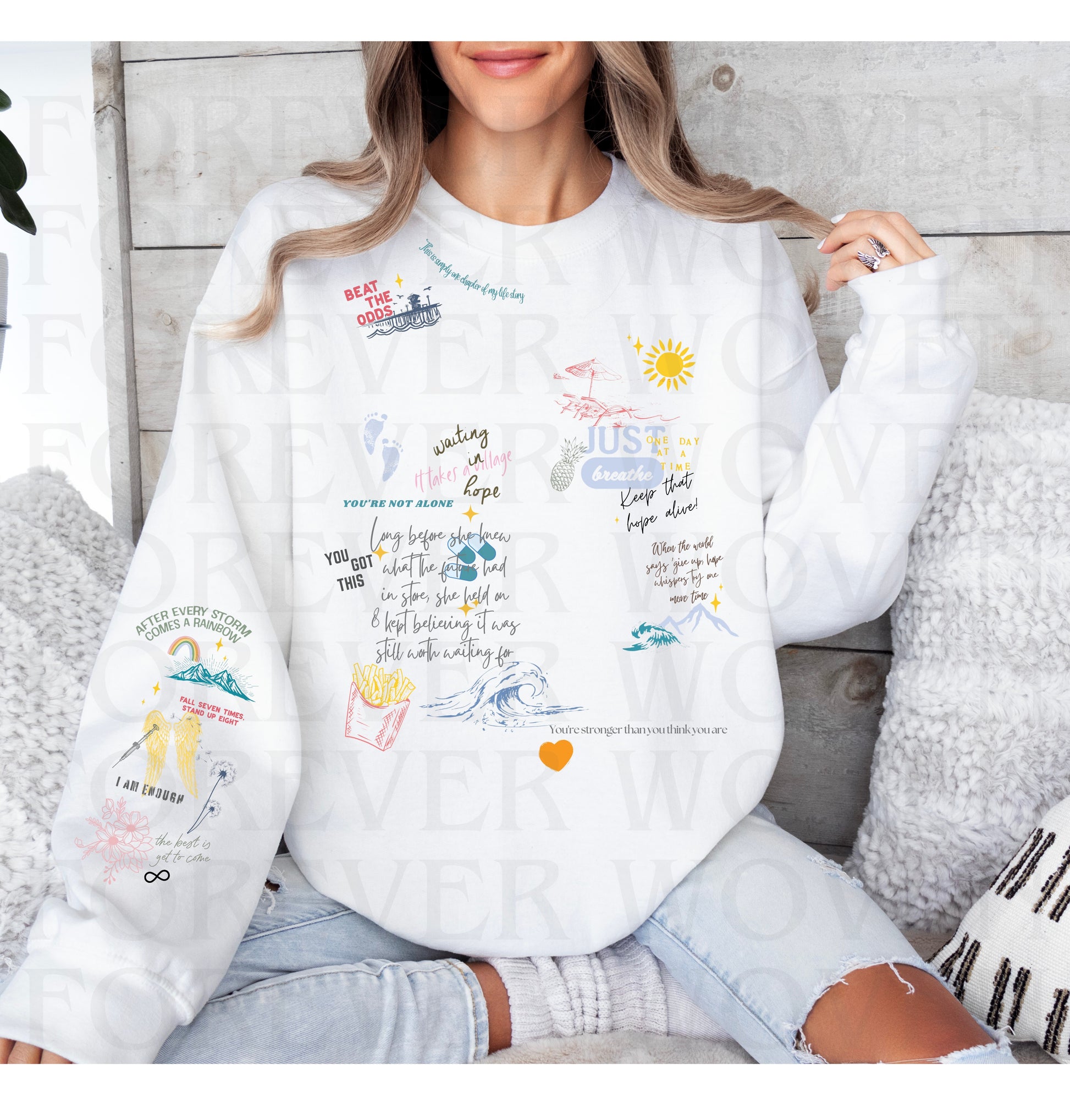 (water seal of repeated forever woven text over photo only for online protection of design. colors and symbols may have slight variations on actual design.)